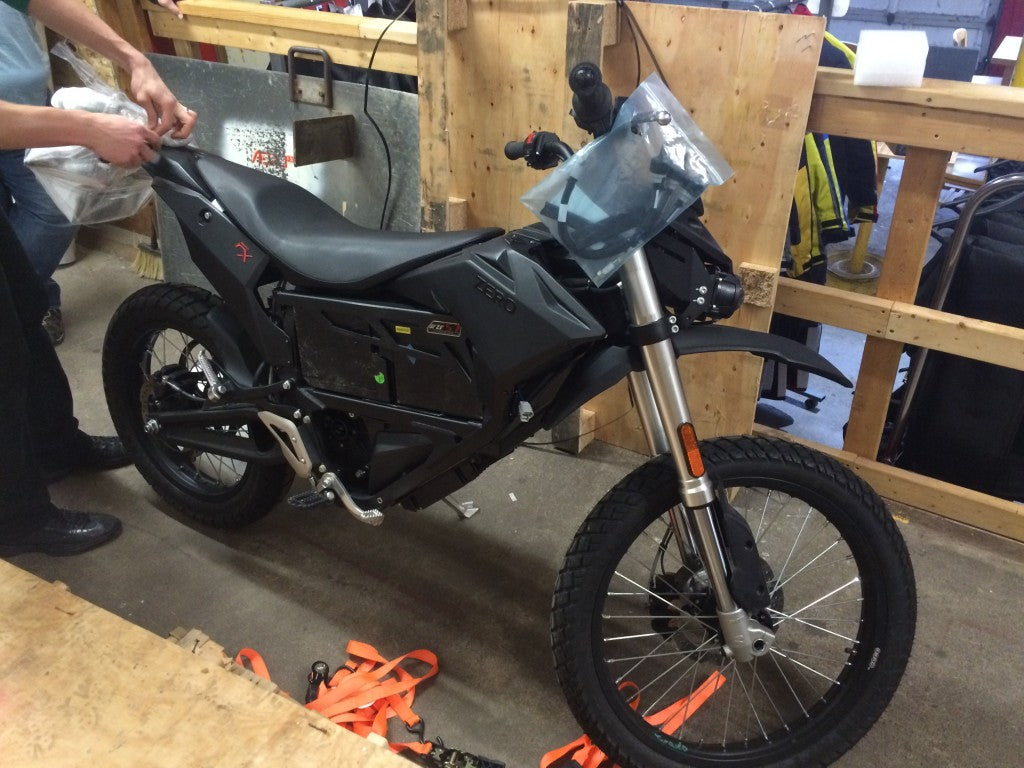 The Zero FX Electric Motorcycle that we will be testing as part of what we are calling the Zero Below Zero project arrived here at Aerostich today, December 22, which also happens to be the Winter Solstice, meaning it is the shortest day of daylight for the year. The crate arrived on the loading dock shortly before noon today and like kids on Christmas morning we anxiously took to the task of setting it free from boxed constraints. Arriving on our loading dock from California, there are a few Northern Minnesota farkles we want to add (heated grips and accessory cords for Kanetsu heated gear, etc…), then it will be acclimated and ready to be unleashed on the snow covered streets of Duluth. This project is sure to be fun, and challenging…but also will be a great opportunity not only to test the durability of running an electric motorcycle in the harsh and cold Minnesota Winter as well as the viability of how, when riding with a properly set-up motorcycle and the right mix of riding gear, that year-round daily riding is a Ride Everywhere option in the real-world. More to come, we hope you will follow along on this everyday riding adventure.