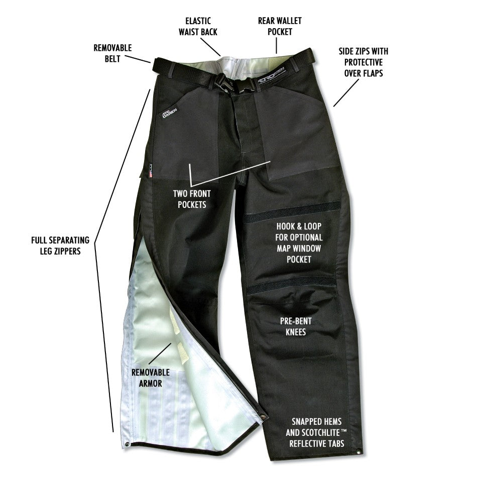 Same idea and specifications as regular Darien pants except made with tough-but-light HT200 Denier Nylon TLTex® fabric. Perfect for summer street or dual sport riding. In even waist sizes 30–46 regular and long. Black or Grey. Choose TF3 or TF6 knee armor. Made in America
