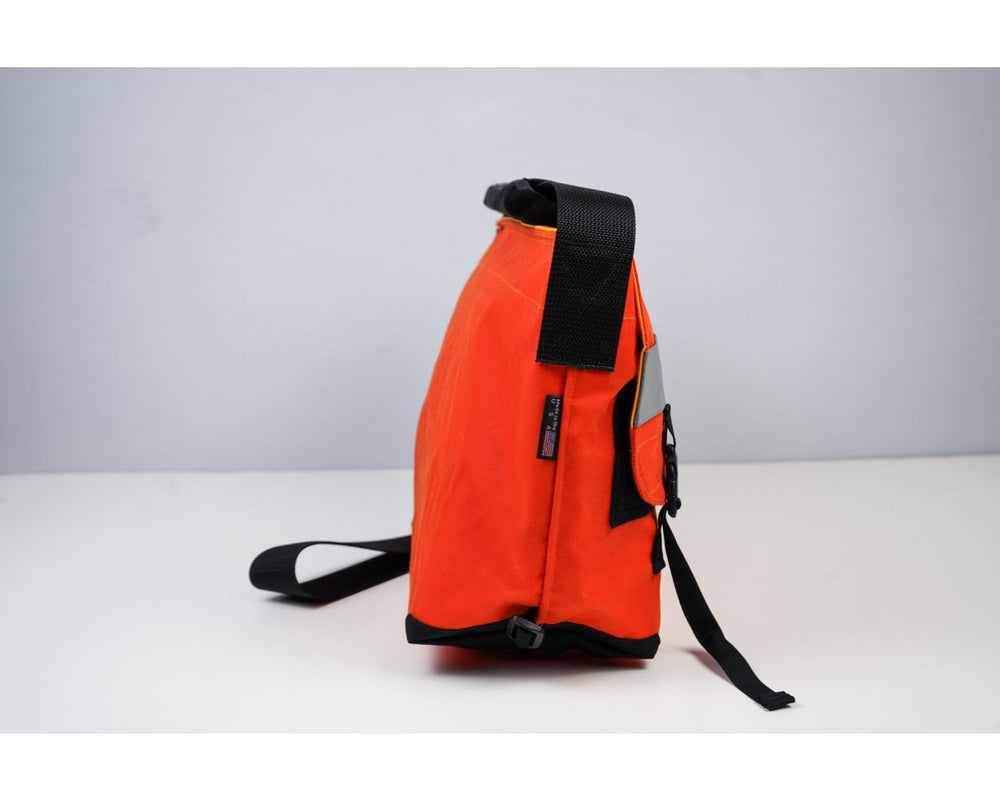 The large flap closes with both a wide strip of hook and loop as well as adjustable quick-release buckles to accommodate larger loads. There's also a handy carrying handle on top of the flap that you'll find everyday useful. Visibility is assured with a wide strip of 3M Scotchlite™ reflective running across the flap. Dispatch Bag: 12"×7"×12"/18". Black, Brown, Green, Yellow, or Orange.