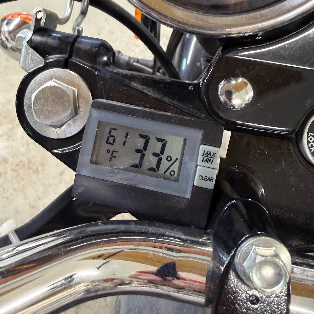 What’s cool about this Mini Hygrometer-Thermometer? It’s sensitive, accurate and quick-responding enough to put a useful number against immediate ambient conditions in real-time. The humidity percentage is particularly cool. As you ride closer to rain, the percentage of moisture in the air steadily increases. (Not raining yet, but you are riding closer and closer.) This instrument lets you predict not only the weather many miles ahead, but when air is hot and dry you’ll also know exactly how desiccating it is. You might not think this is interesting, but turns out it is. Lastly, it’s small and easy put anywhere, too.