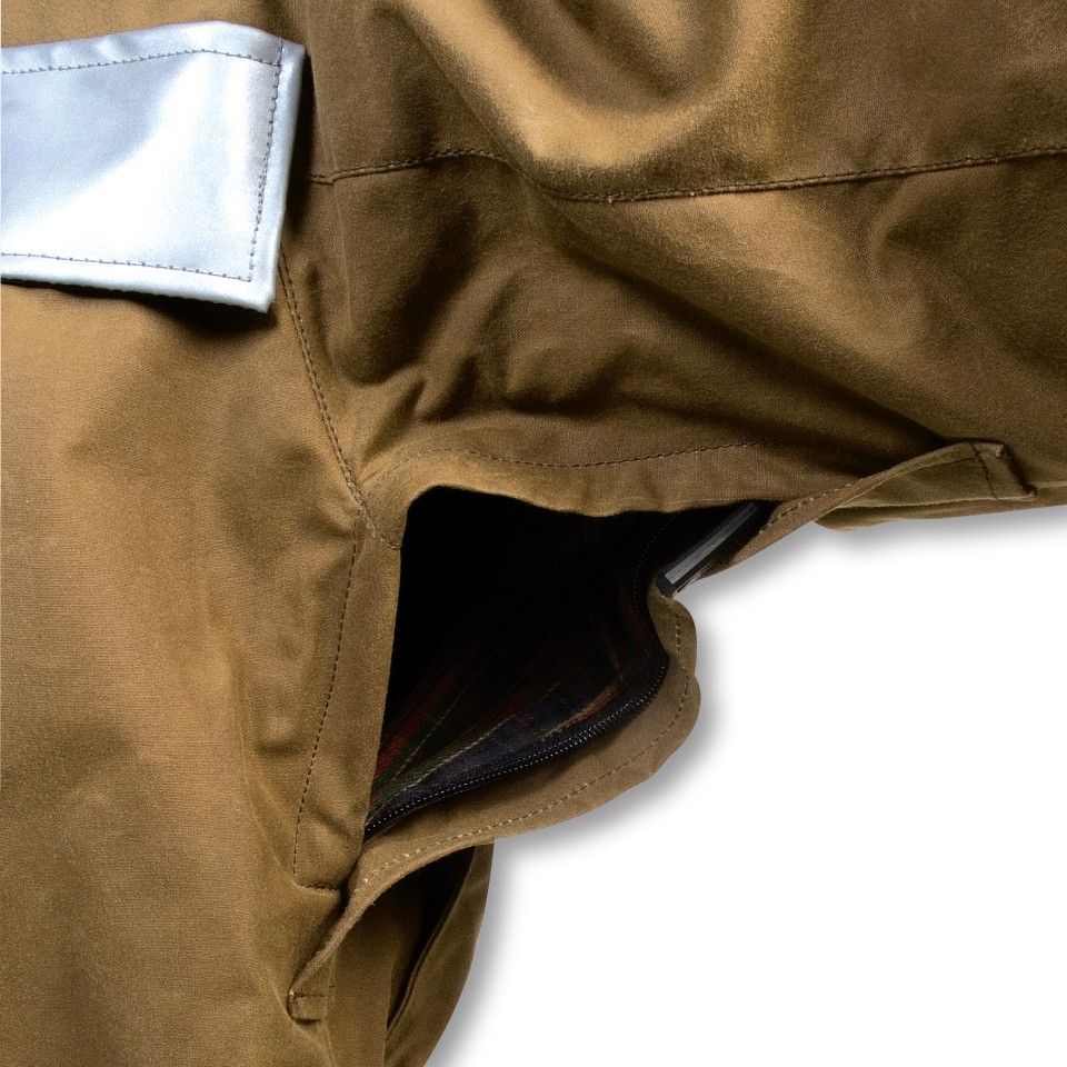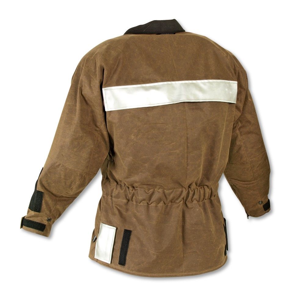 Its authentic English waxed cotton is exactly the same fabric proven in traditional British gear. Rugged 8.25 ounce fabric, made the same way for over 170 years, with proven resistance to inclement weather, while the cotton fibers allow it to breathe. It is highly durable, exceptionally comfortable and proven by generations of riders, outdoorsmen and commercial fisherman (wearing oilskins) in the harshest conditions. As the fabric ages it also develops a well-worn and comfortable patina, telling your unique story of every mile ridden. (The Competition version uses heavy-duty 10.10 oz waxed cotton.)